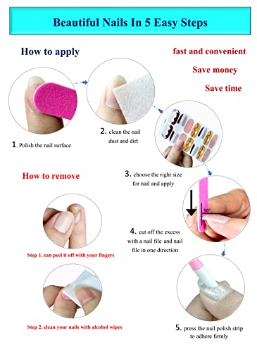 Mrs. O’s Manicure 6-Piece luxury nail polish strip set, 2 nail polish strips, 1 nail file, 1 rubber cuticle pusher random color, and 2 alcohol wipes, nail stickers full nail wraps, gel nail strips