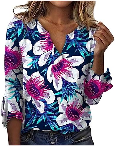 Features: 3/4 irregular Sleeve/Bell Sleeve/V Neck/button down/floral print/Feminine Detail/Striped Shirts for Women/Loose Fit/Business Casual Clothes for Office Work Wear/Ladies Formal Career Top/Fashion and Vintage Design 2023/Pullover/Modern Chic Style/Spring/Summer/Fall/Winte